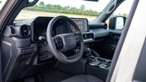 فضای داخلی بسیار ابتدایی است. من از طرفداران پر و پا قرص صندلیهای پارچهای هستم، بنابراین لندکروزر را به خاطر تاج و تختهای غیرچرمی آن نمیخوانم. اما برای یک SUV نزدیک به 60000 دلار، بقیه کابین کاملاً ساده به نظر می رسد. تعداد زیادی پلاستیک سخت سیاه وجود دارد و صفحه نمایش لمسی آن برای سال 2024 بسیار کوچک است و تنها 8.0 اینچ است.