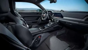 در داخل، تغییرات زیادی در 911 کاررا جدید مشاهده می شود، اما GT3 به جای استارت دکمه ای، یک سوئیچ احتراق را حفظ می کند. طراحی جدیدی از صندلیهای سطلی فیبر کربنی با پشتی تاشو و گرمکن اختیاری وجود دارد و در GT3 Touring، میتوانید برای اولین بار در هر GT3 صندلیهای عقب را انتخاب کنید.